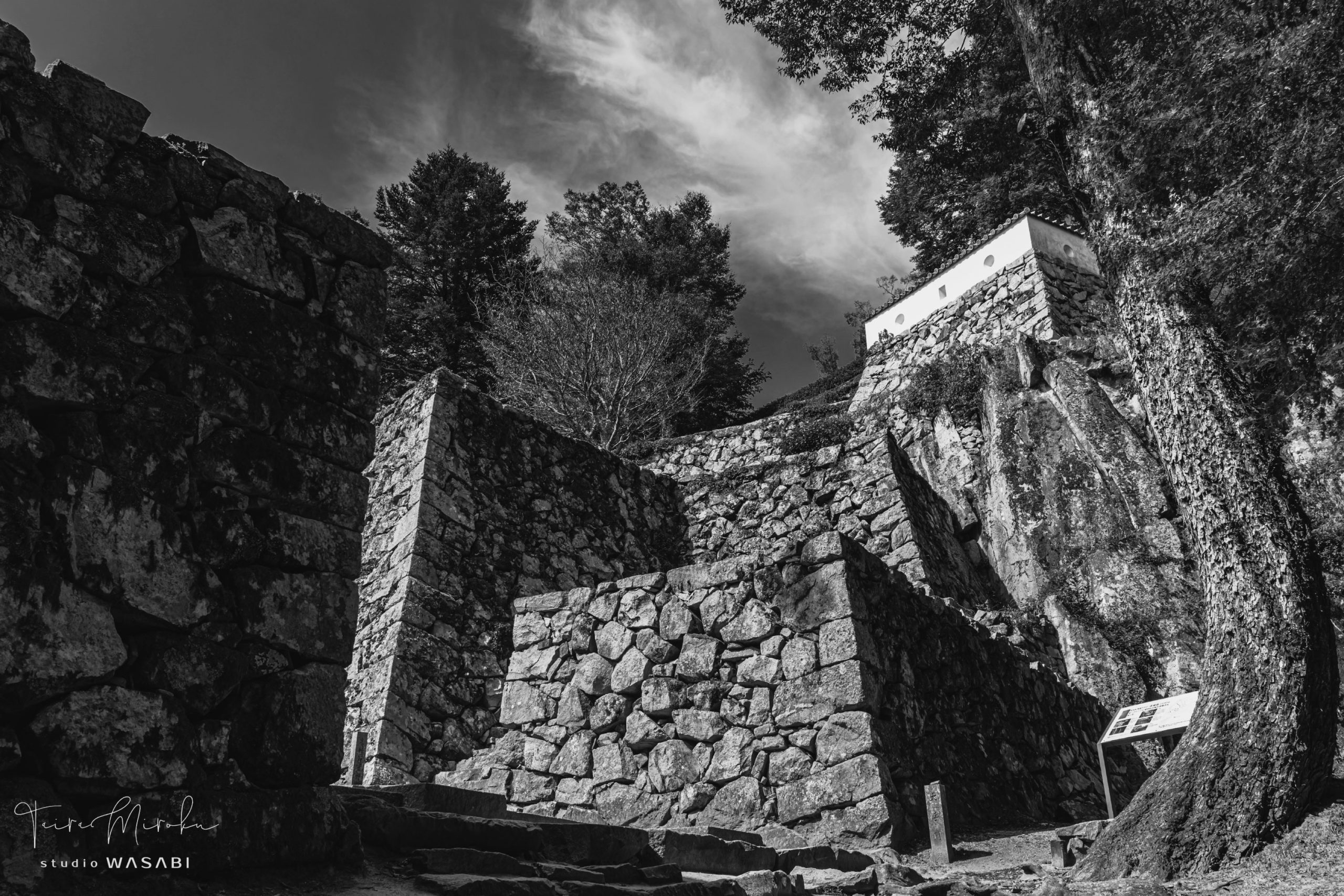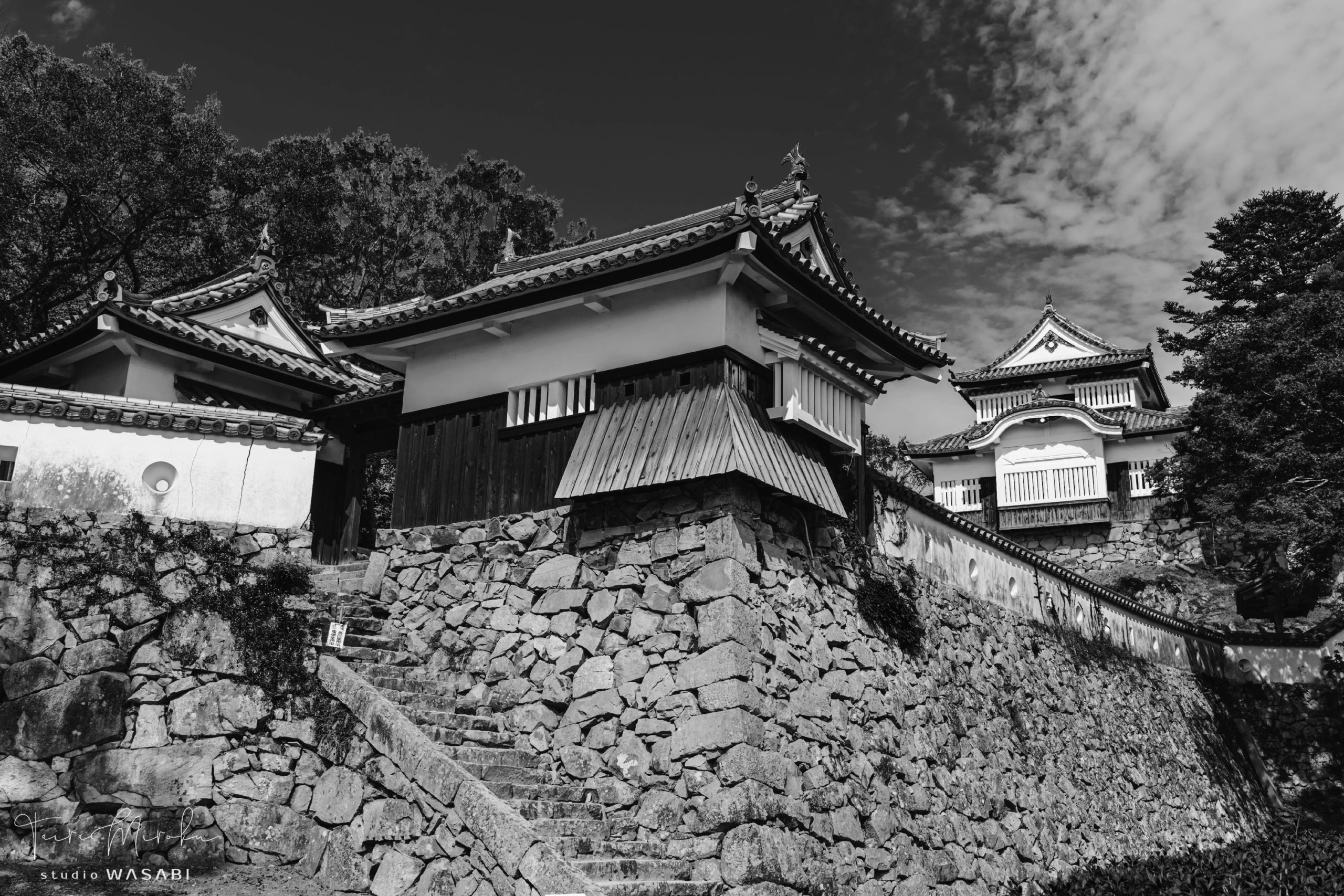 Bitchu Matsuyama Castle is one of the 12 existing castle towers and the only mountain castle. The stonewalls, which skillfully incorporate the natural rocky hillside, are stunning. I feel that these stonewalls have more presence than the remaining castle buildings.