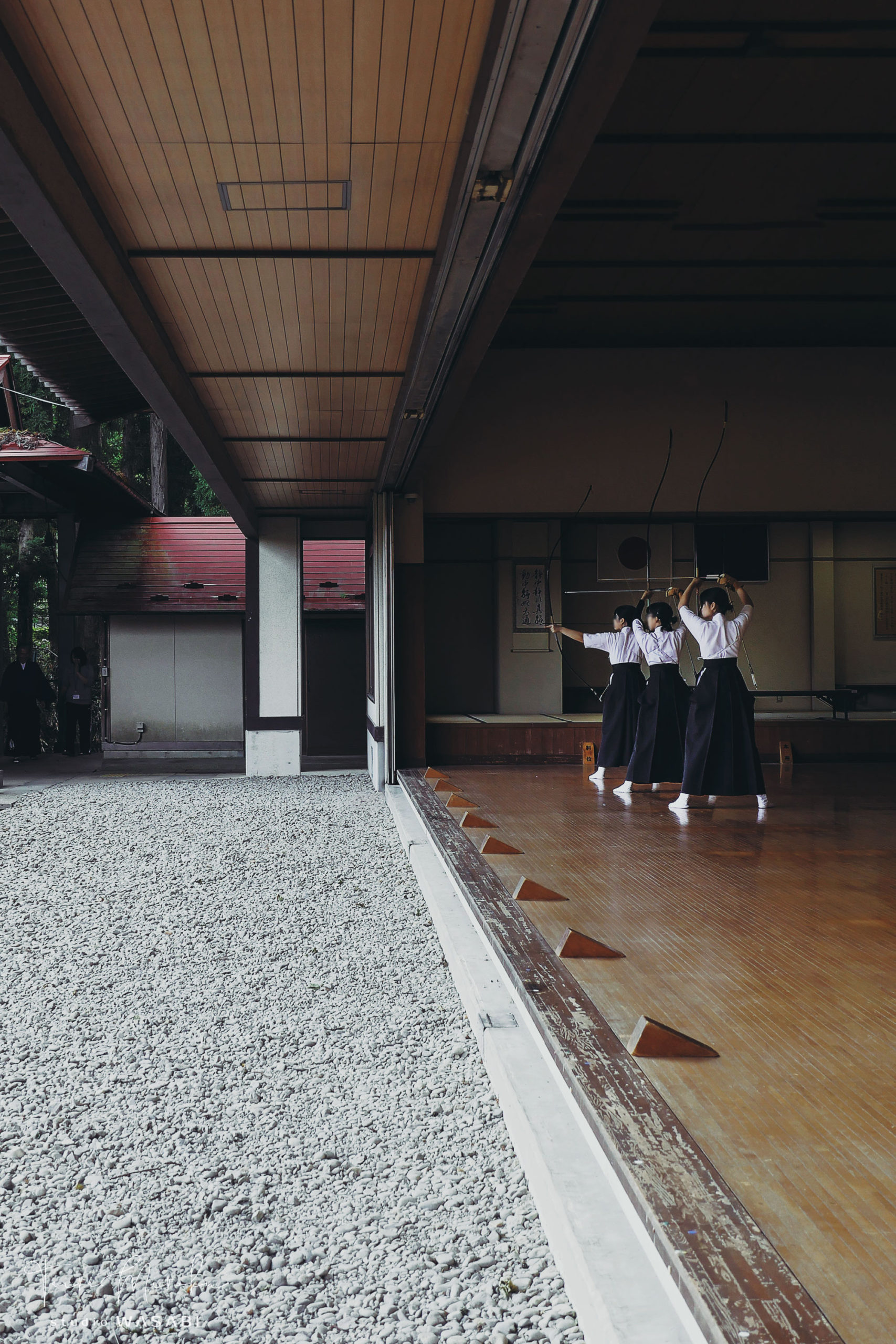 In the silence, the sound of the arrow being plucked and the gaze toward the target further sharpened the tense air. At the moment you catch your breath, the arrow leaves the string, and the sound of the wind cutting through the air pierces the air.