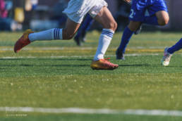 中学生のサッカーゲーム。最近の中学生のテクニカルなプレイに目を見張る。緑のピッチに少年達が躍動していた。